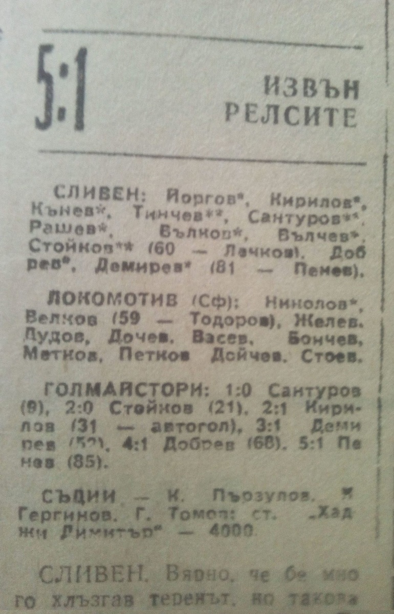 «Сливен» Сливен - «Локомотив» София - 5:1