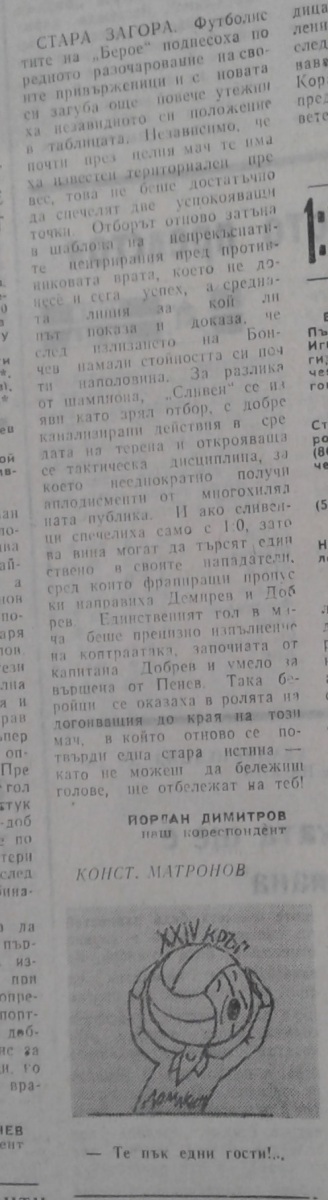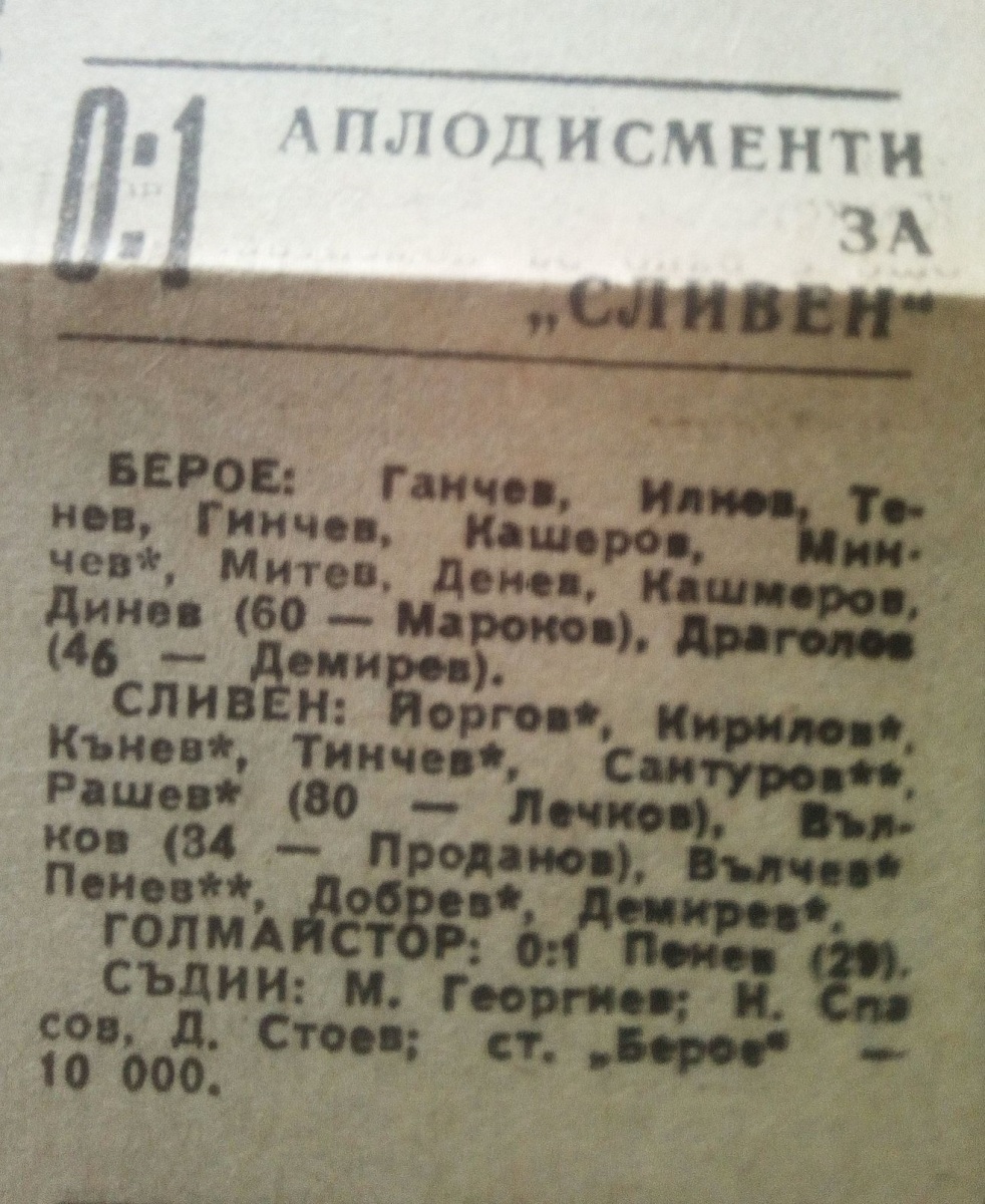 «Берое» Стара-Загора - «Сливен» Сливен - 0:1