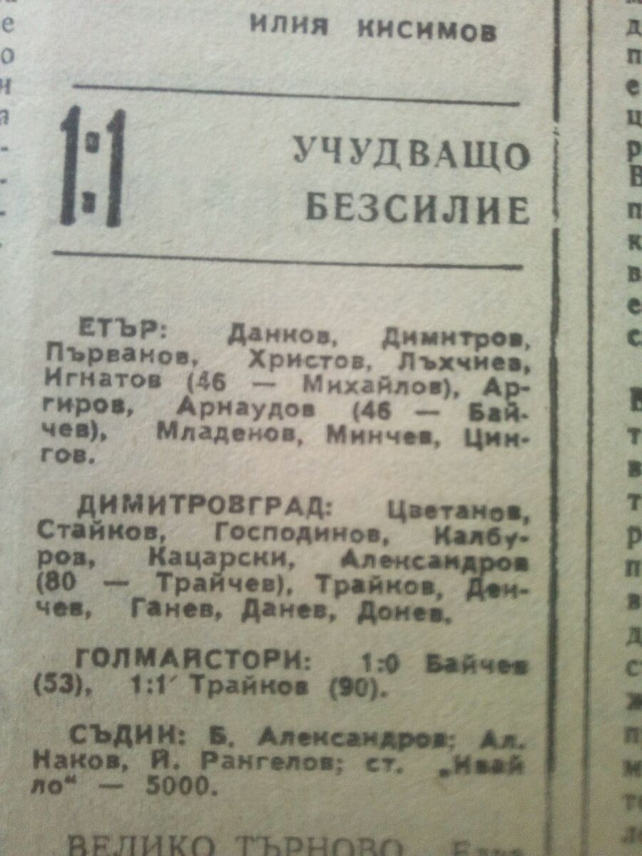 «Этыр» Велико-Тырново - «Димитровград» Димитровград - 1:1