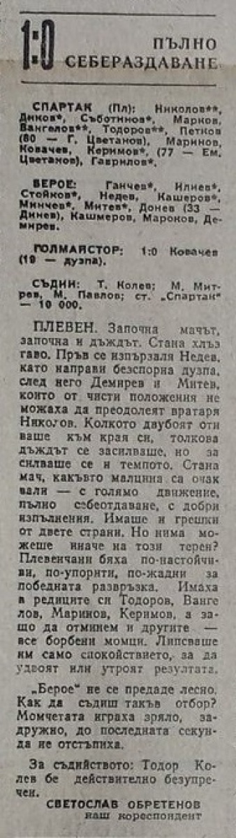 «Спартак» Плевен - «Берое» Стара-Загора - 1:0