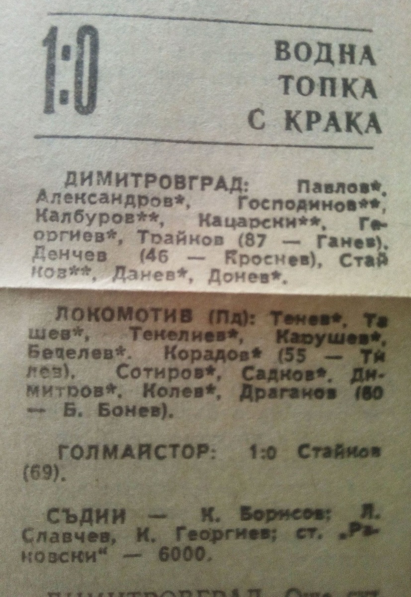 «Димитровград» Димитровград - «Локомотив» Пловдив - 1:0