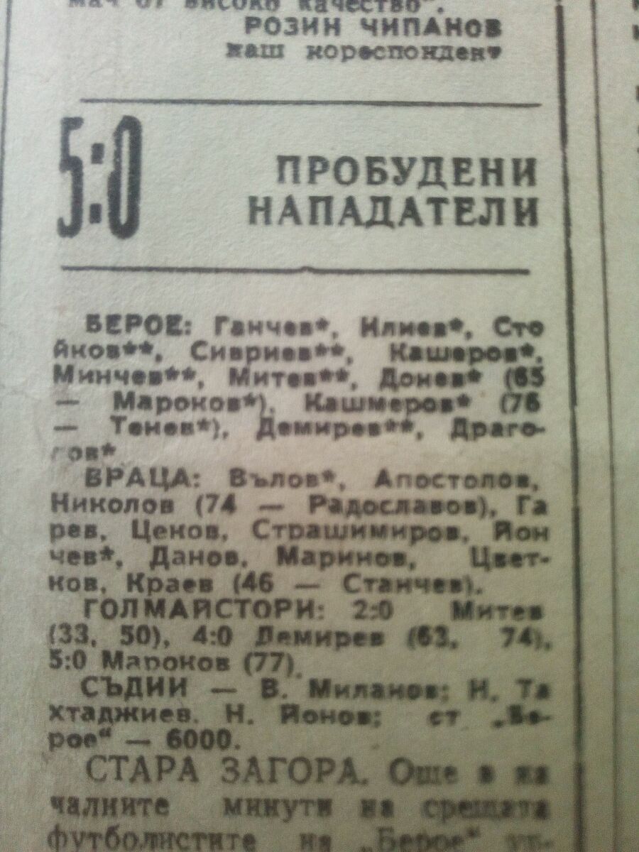 «Берое» Стара-Загора - «Враца» Враца - 5:0