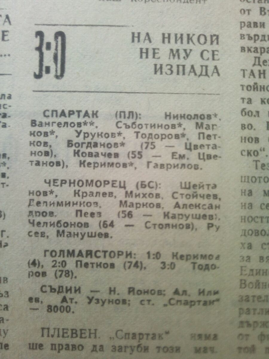 «Спартак» Плевен - «Черноморец» Бургас - 3:0