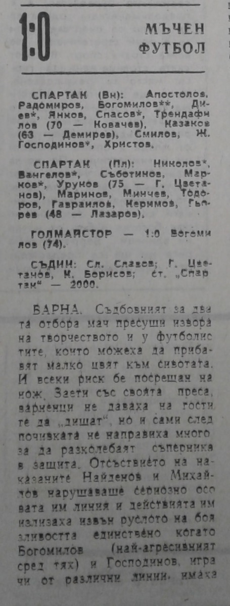 «Спартак» Варна - «Спартак» Плевен - 1:0