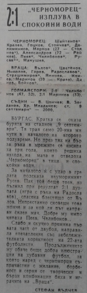«Черноморец» Бургас - «Враца» Враца - 2:1