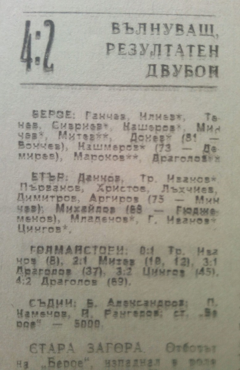 «Берое» Стара-Загора - «Этыр» Велико-Тырново - 4:2