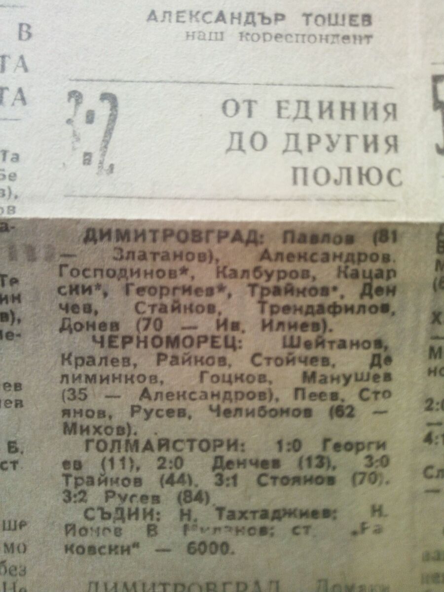 «Димитровград» Димитровград - «Черноморец» Бургас - 3:2