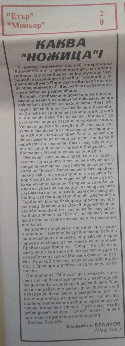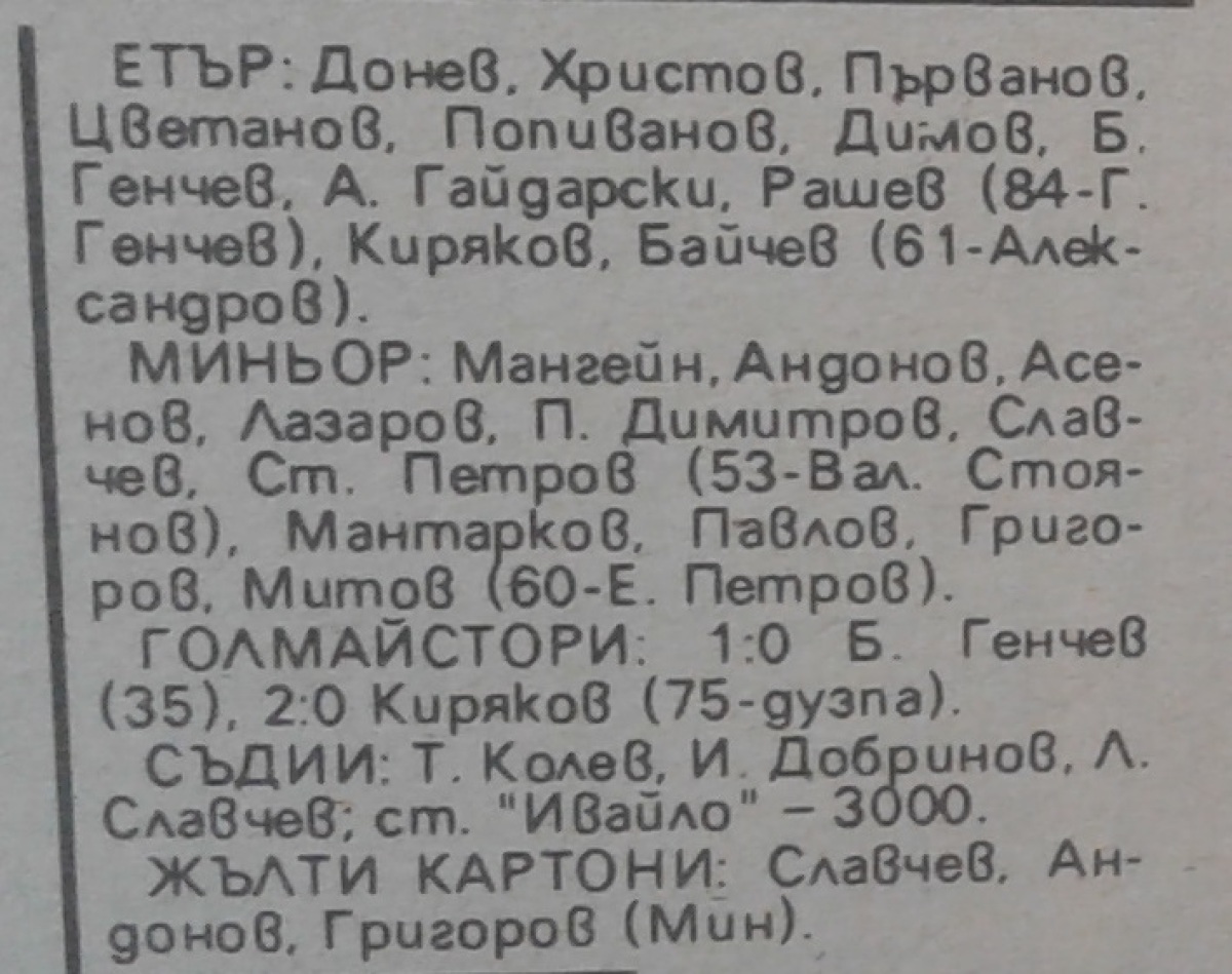 «Этыр» Велико-Тырново - «Минёр» Перник - 2:0