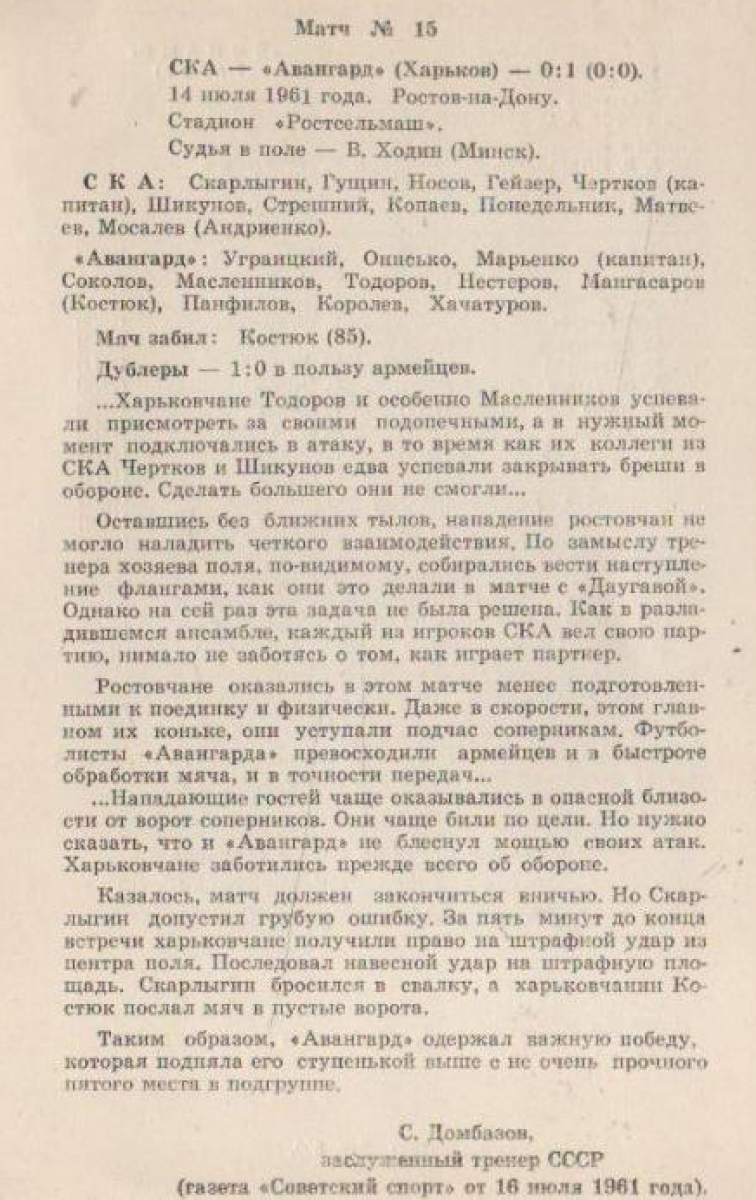 СКА Ростов-на-Дону - «Авангард» Харьков - 0:1