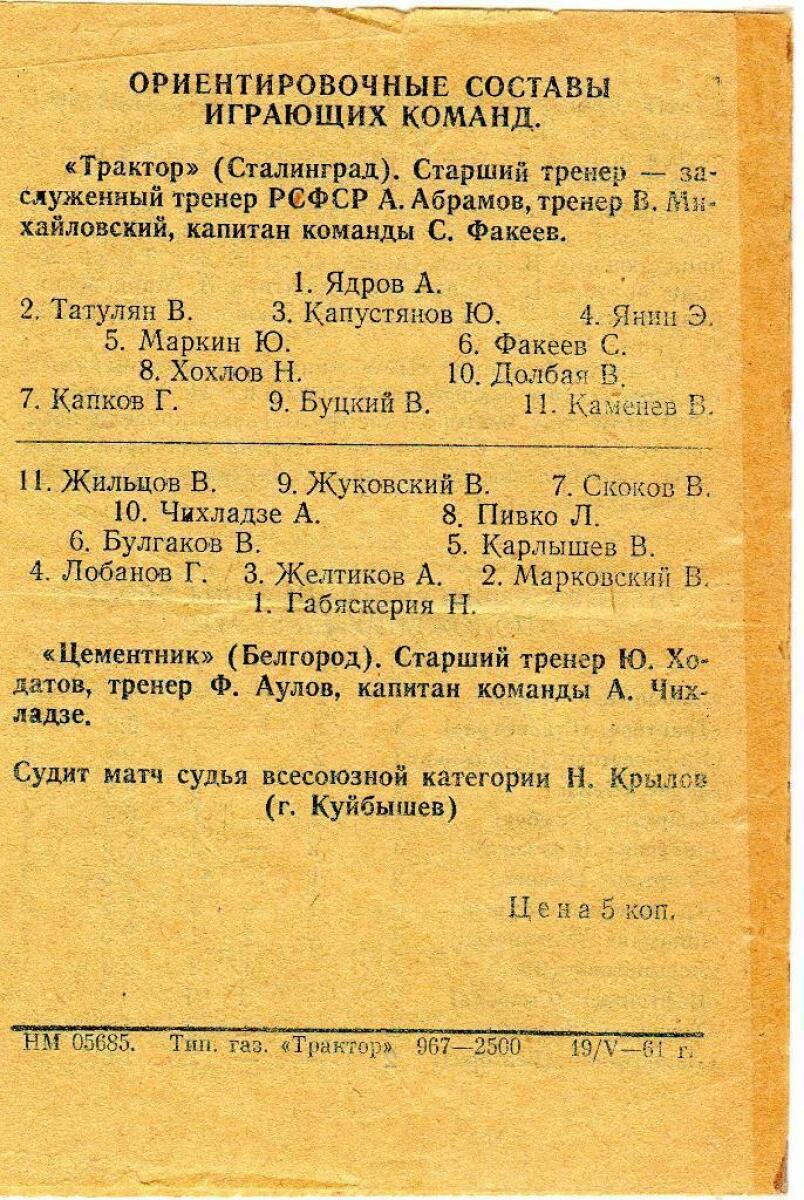 «Трактор» Сталинград - «Цементник» Белгород - 0:1
