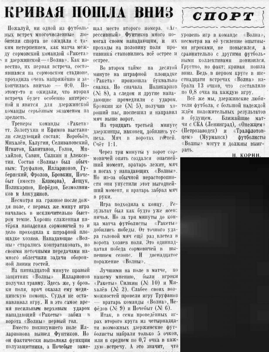 «Волна» Дзержинск - «Ракета» Горький - 1:2