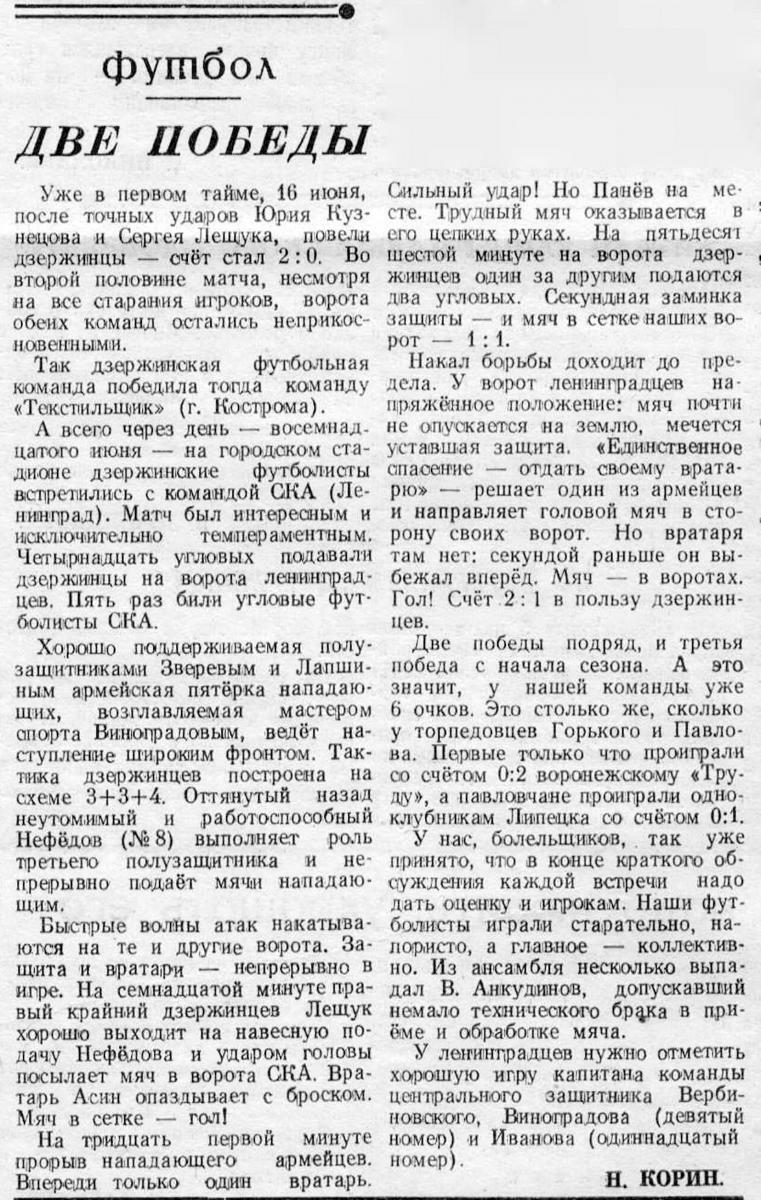 «Волна» Дзержинск - СКА Ленинград - 2:1