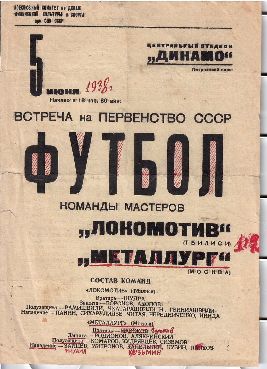 «Металлург» Москва - «Локомотив» Тбилиси - 2:1