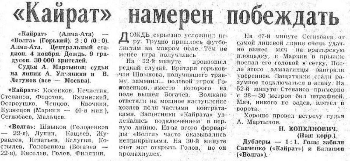 «Кайрат» Алма-Ата - «Волга» Горький - 2:0
