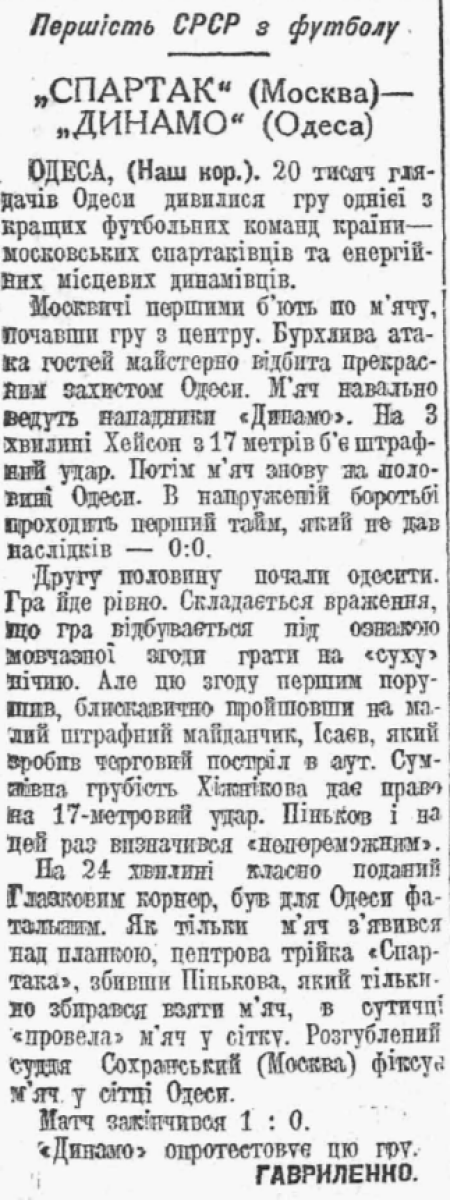 «Динамо» Одесса - «Спартак» Москва - 0:1