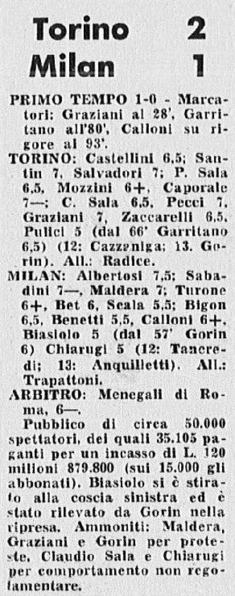«Торино Кальчо» Турин - «Милан» Милан - 2:1