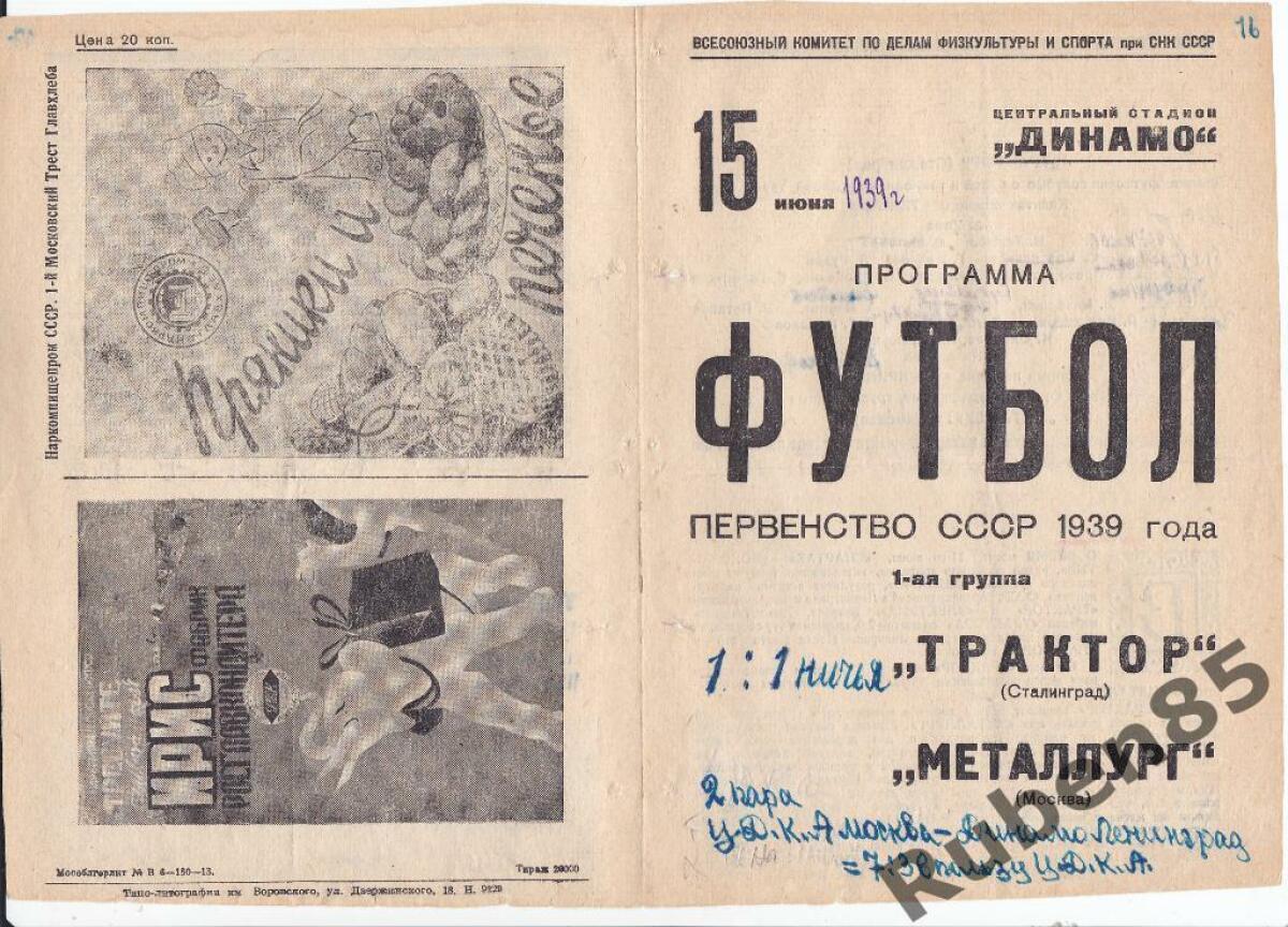 «Металлург» Москва - «Трактор» Сталинград - 1:1