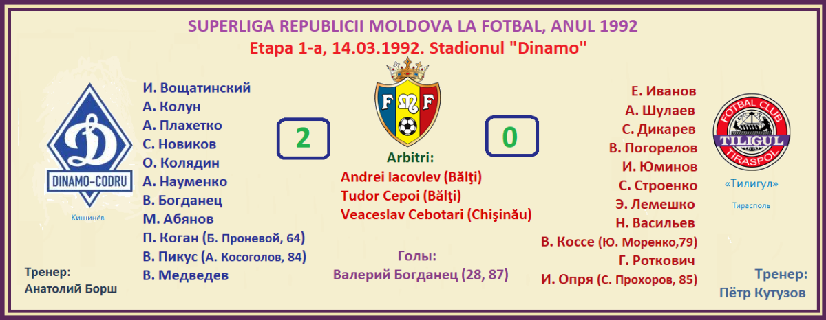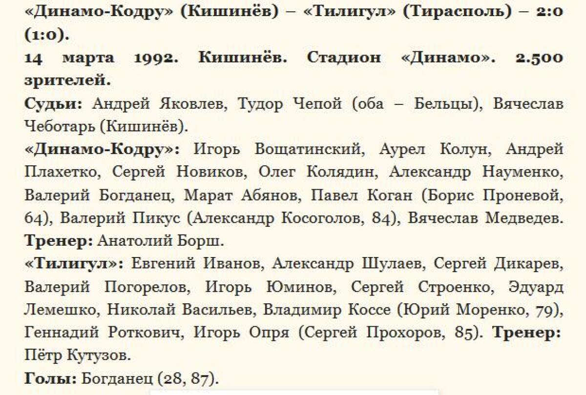 «Динамо-Кодру» Кишинёв - «Тилигул» Тирасполь - 2:0