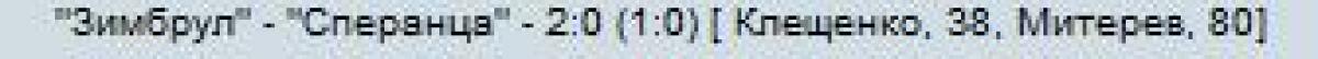 «Зимбру» Кишинёв - «Сперанца» Ниспорены - 2:0
