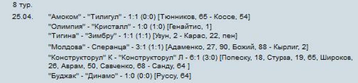 «Олимпия» Бельцы - «Кристалул» Фалешты - 1:0