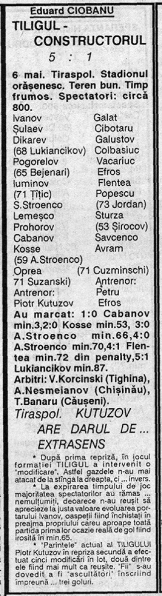 «Тилигул» Тирасполь - «Конструкторул-Агро» Кишинёв - 5:1