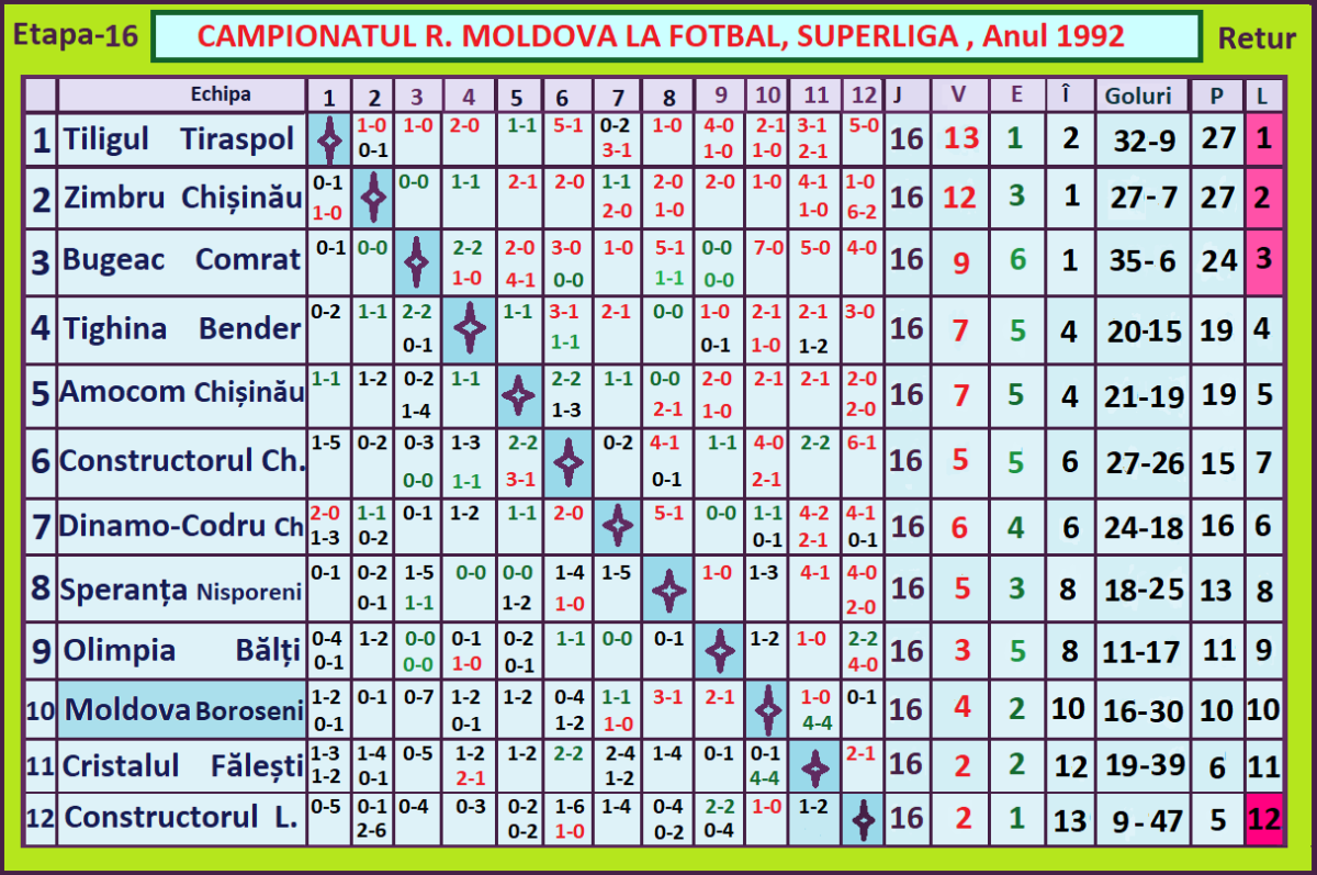 Чемпионат Молдавии 1992. Национальная дивизия