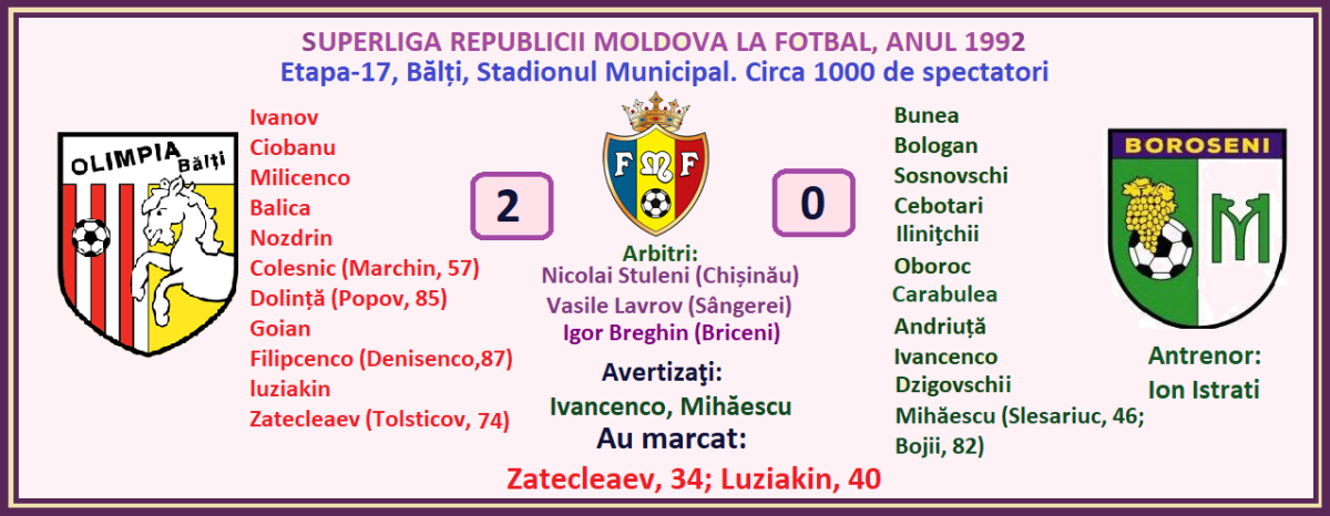 «Олимпия» Бельцы - «Молдова» Боросений Ной - 2:0