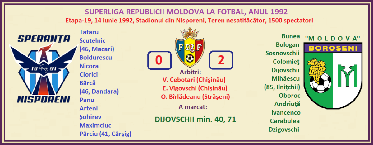 «Сперанца» Ниспорены - «Молдова» Боросений Ной - 0:2