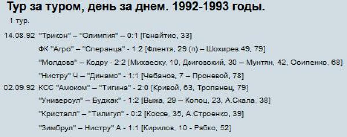 Чемпионат Молдавии 1992/93. Национальная дивизия