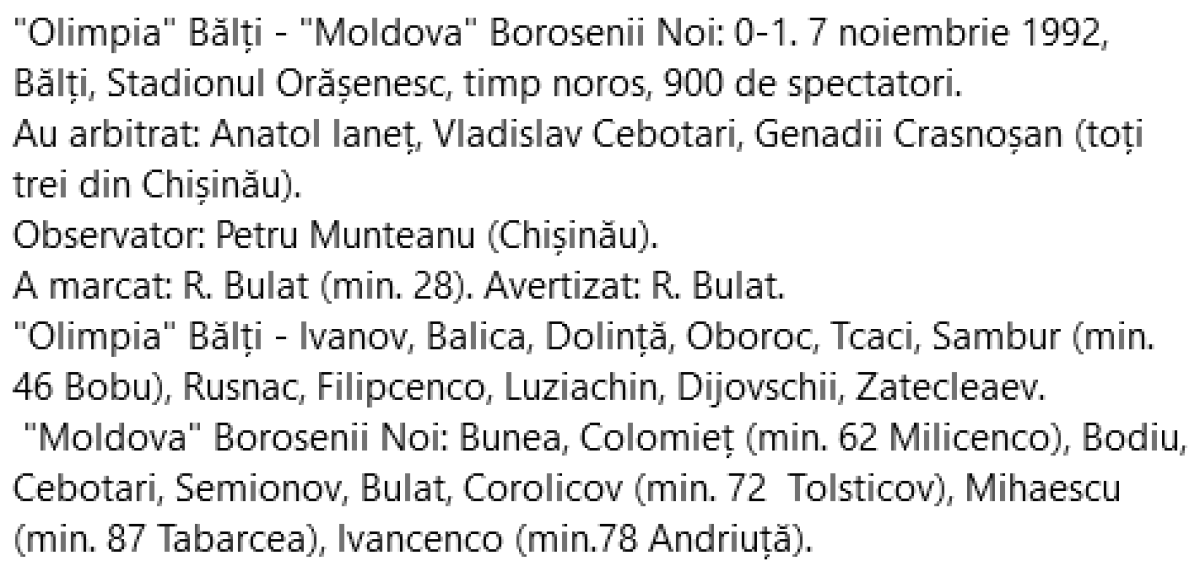 «Олимпия» Бельцы - «Молдова» Боросений Ной - 0:1