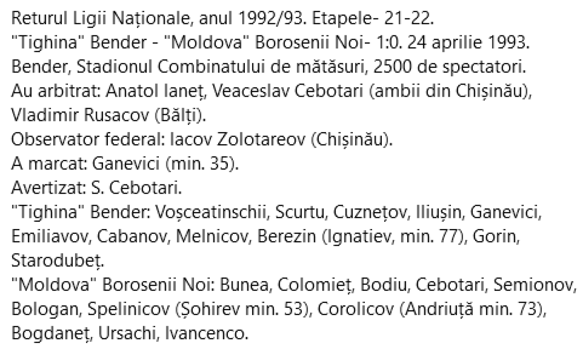 «Тигина» Бендеры - «Молдова» Боросений Ной - 1:0