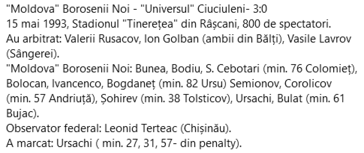 «Молдова» Боросений Ной - «Универсул» Чучулены - 3:0