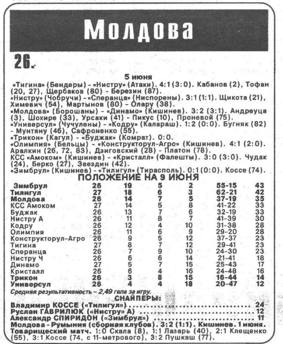 Чемпионат Молдавии 1992/93. Национальная дивизия