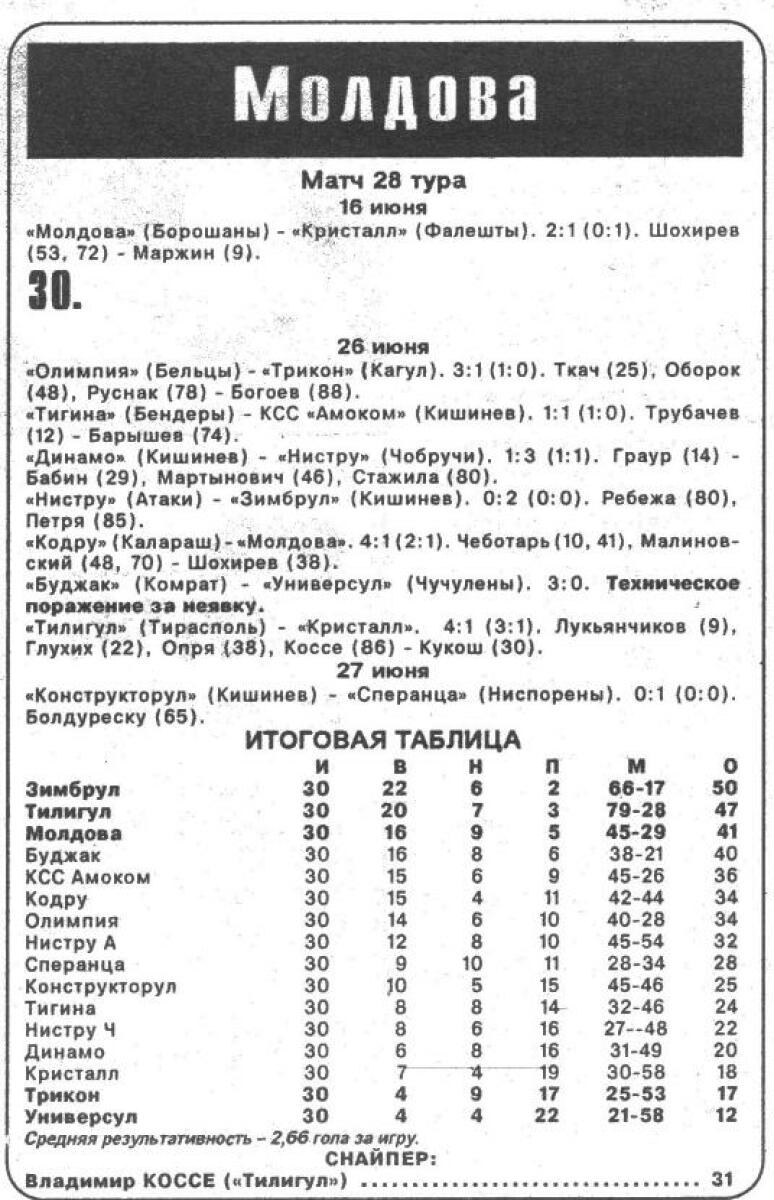 Чемпионат Молдавии 1992/93. Национальная дивизия