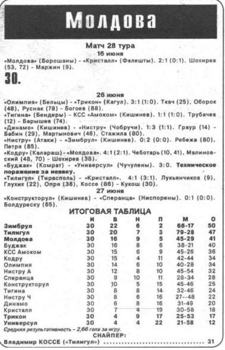 Чемпионат Молдавии 1992/93. Национальная дивизия