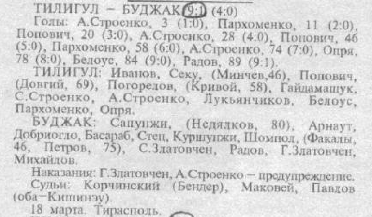 «Тилигул» Тирасполь - «Буджак» Комрат - 9:1