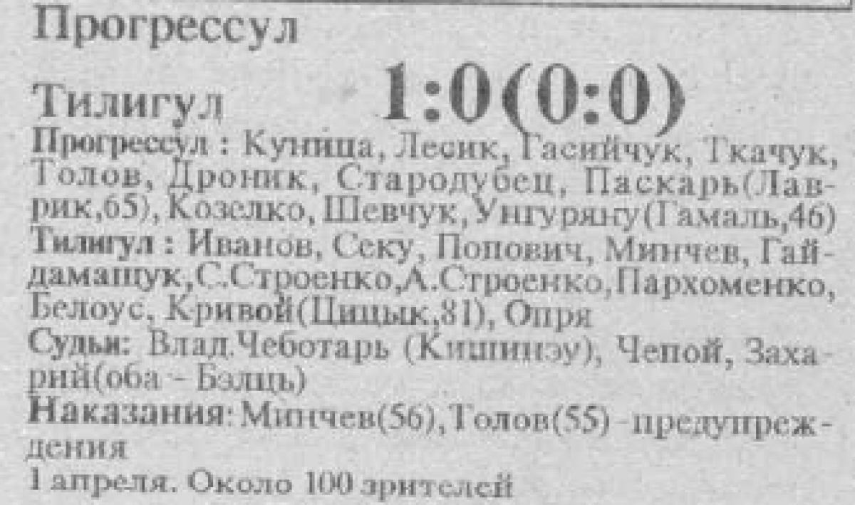«Прогресул» Бричаны - «Тилигул» Тирасполь - 0:1
