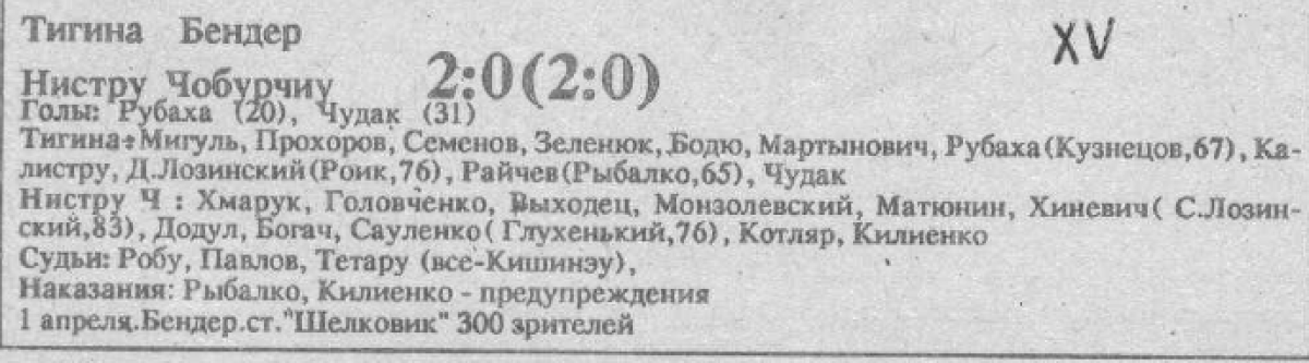 «Тигина» Бендеры - «Нистру» Чобурчи - 2:0