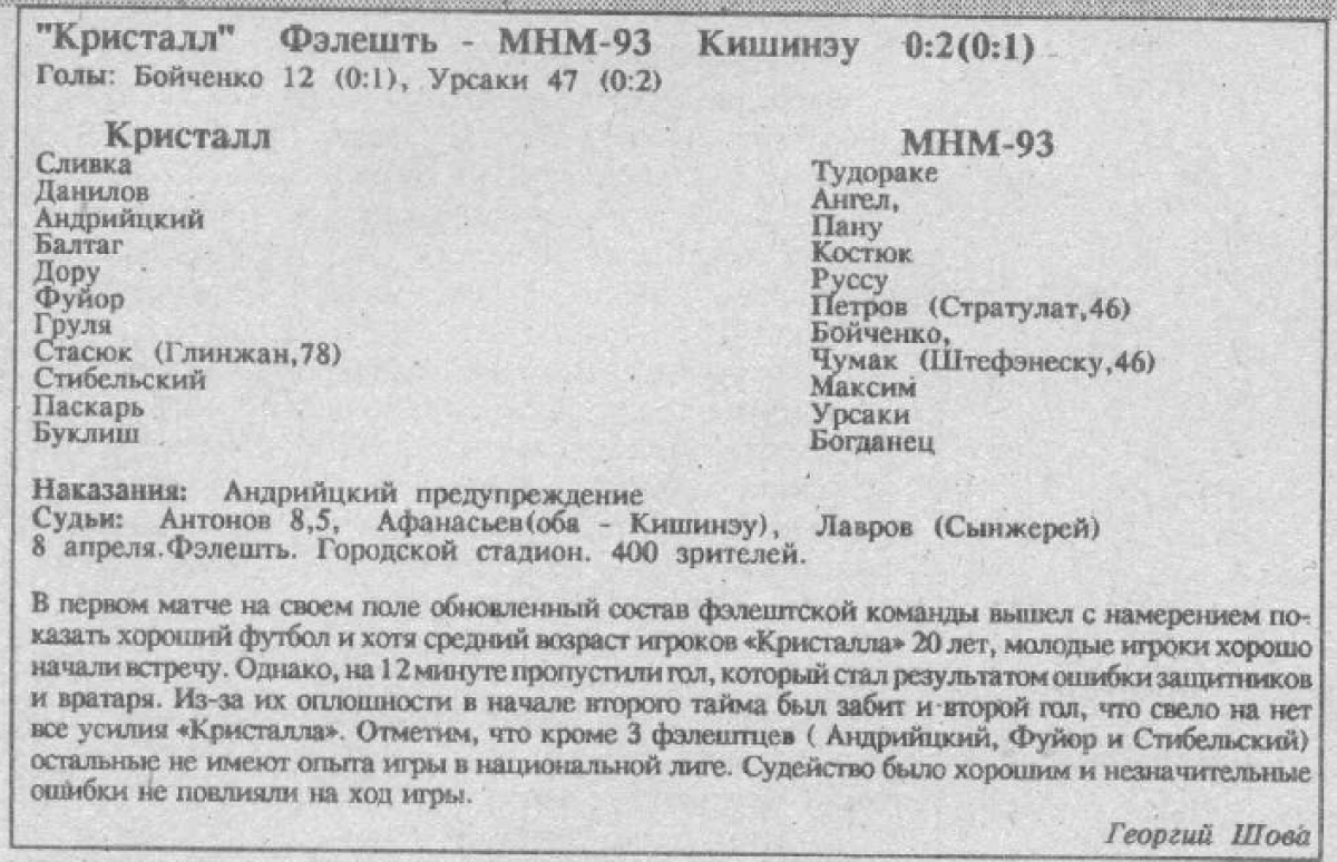 «Кристалул» Фалешты - «МХМ-93» Кишинёв - 0:2