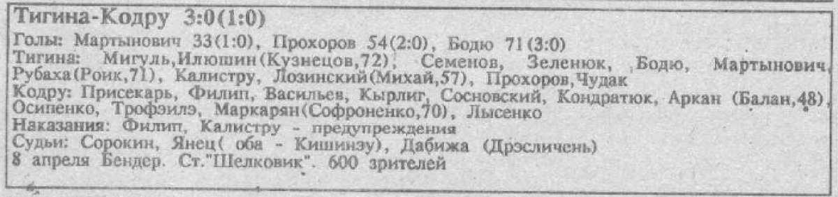 «Тигина» Бендеры - «Кодру» Калараш - 3:0