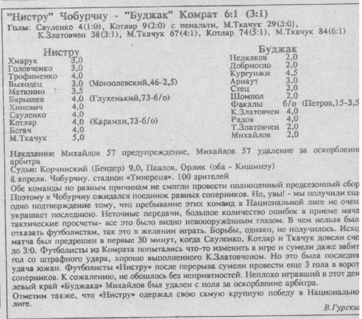 «Нистру» Чобурчи - «Буджак» Комрат - 6:1