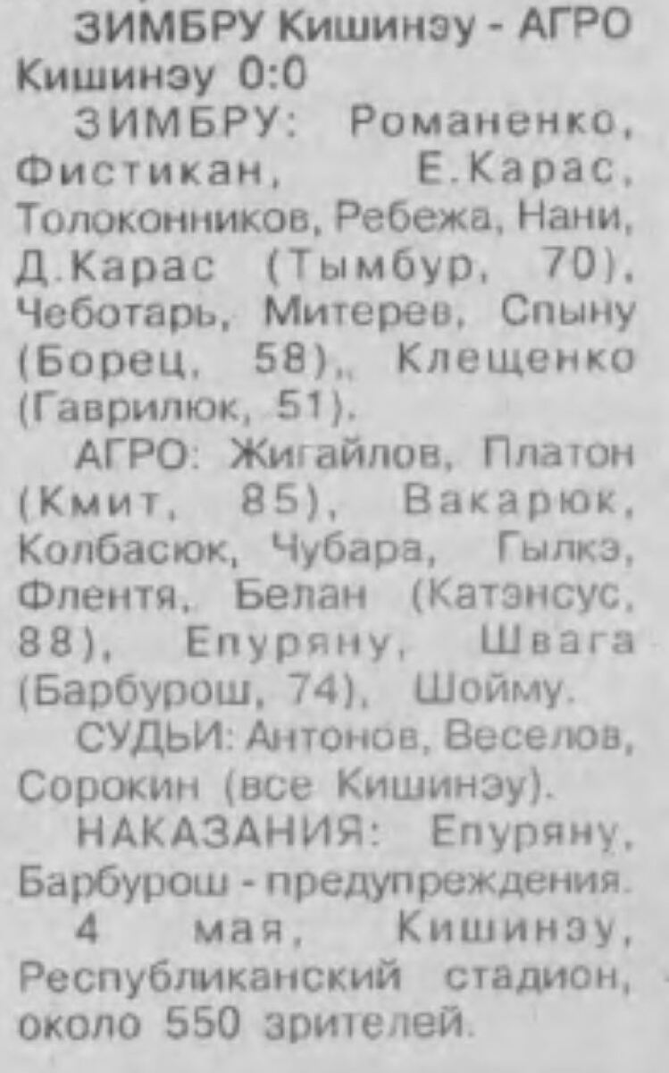«Зимбру» Кишинёв - «Агро» Кишинёв - 0:0