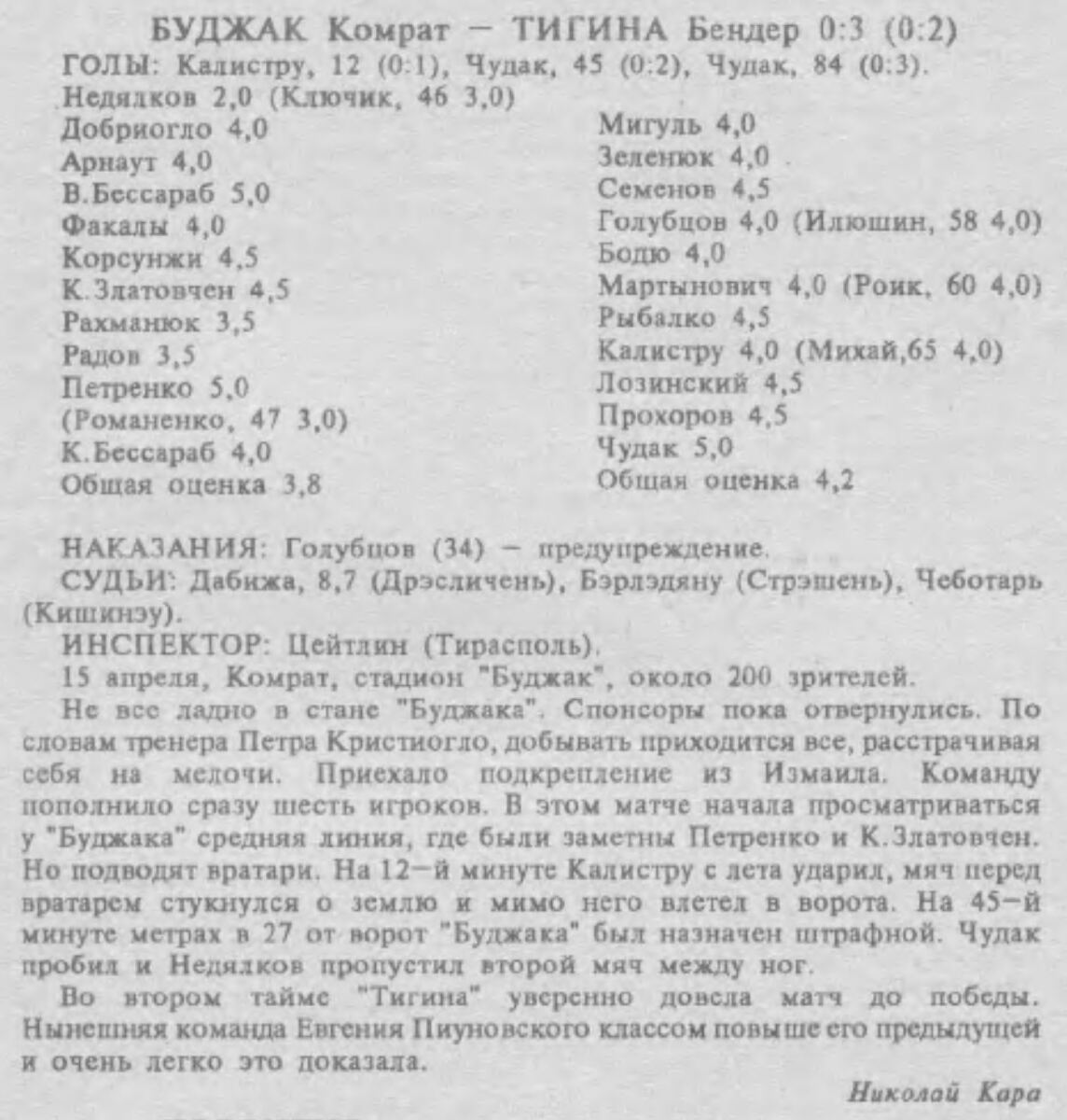 «Буджак» Комрат - «Тигина» Бендеры - 0:3