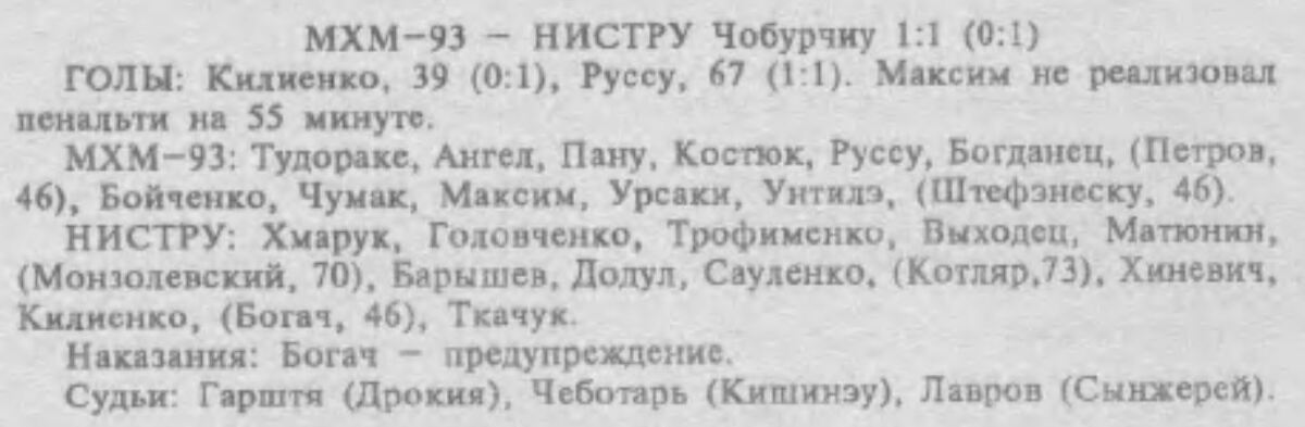«МХМ-93» Кишинёв - «Нистру» Чобурчи - 1:1