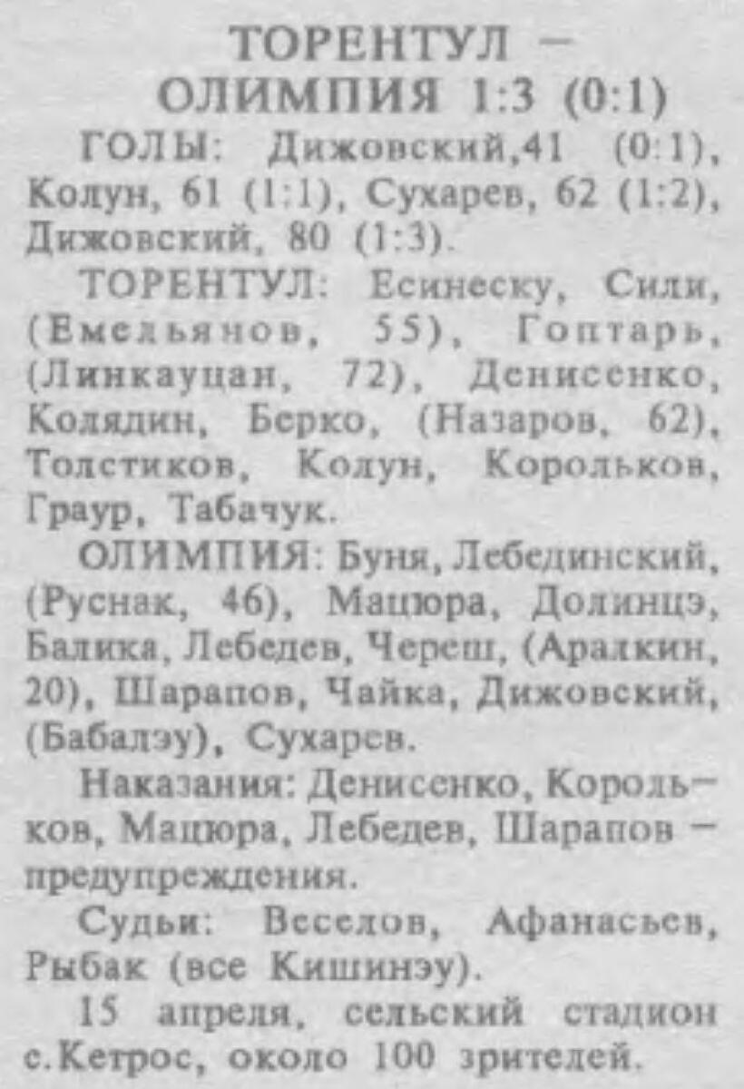 «Торентул» Кишинёв - «Олимпия» Бельцы - 1:3