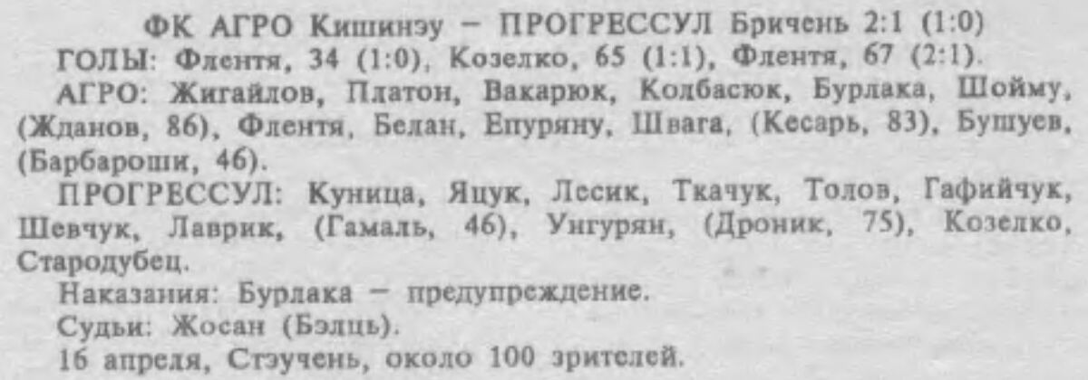 «Агро» Кишинёв - «Прогресул» Бричаны - 2:1