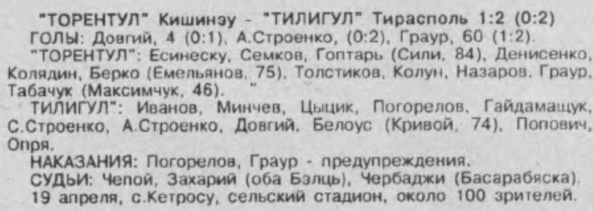 «Торентул» Кишинёв - «Тилигул» Тирасполь - 1:2