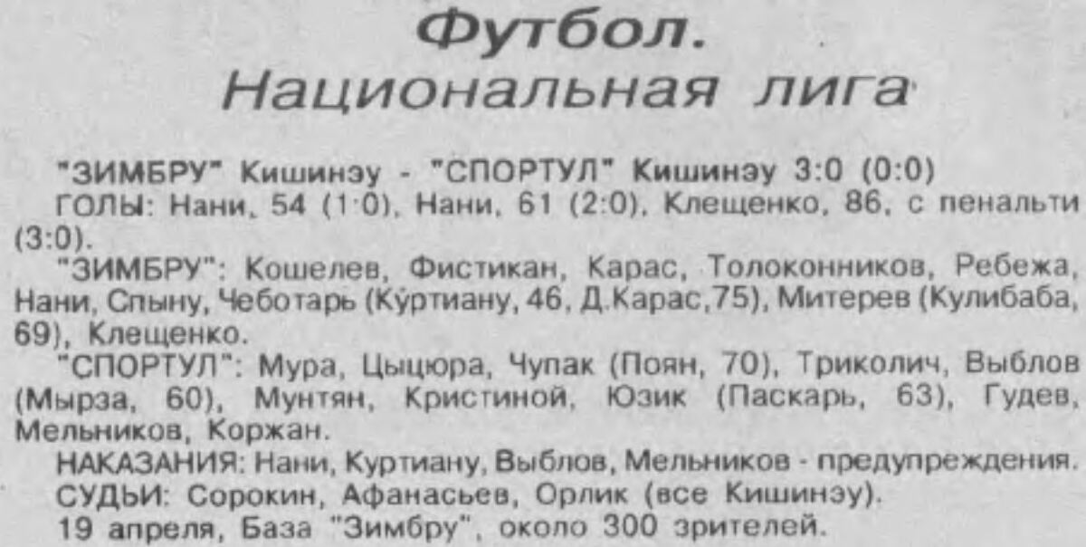 «Зимбру» Кишинёв - «Спортул-Студенцеск» Кишинёв - 3:0
