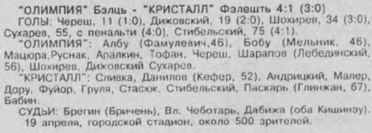 «Олимпия» Бельцы - «Кристалул» Фалешты - 4:1