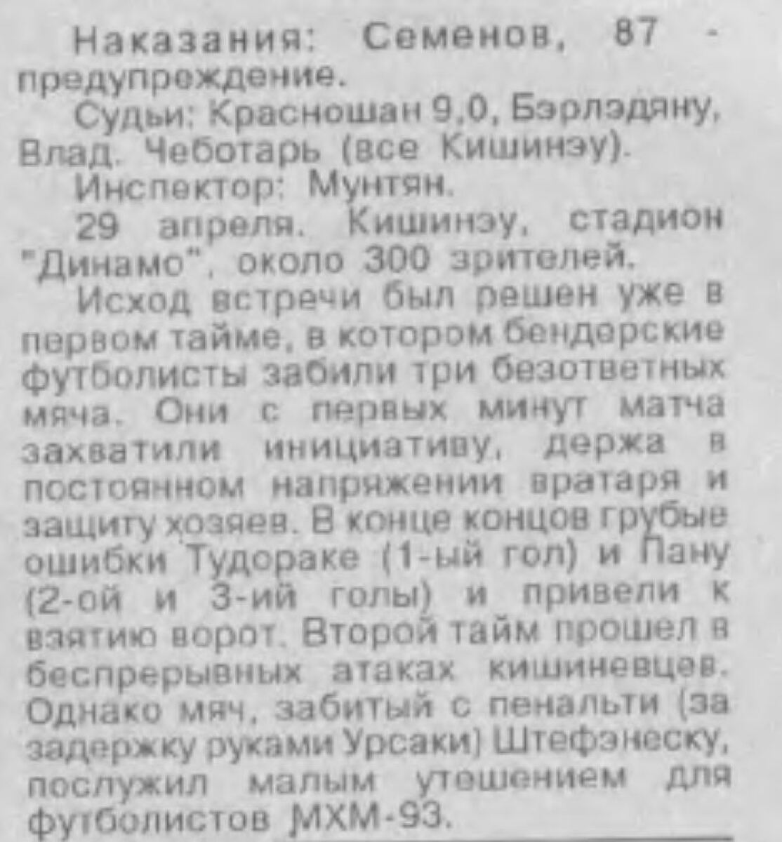«МХМ-93» Кишинёв - «Тигина» Бендеры - 1:3